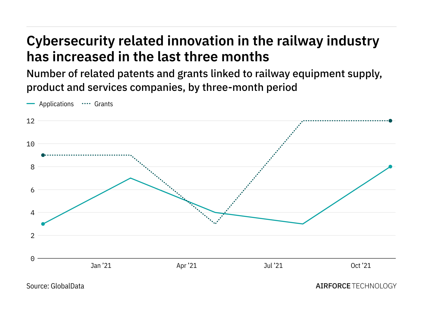 FedEx Corp was the top cybersecurity innovator in the railway equipment supply, product and services sector in the last quarter. The company, which has its headquarters in the United States, filed 12 related patents in the three months ending November. That was up from nine over the same period last year.