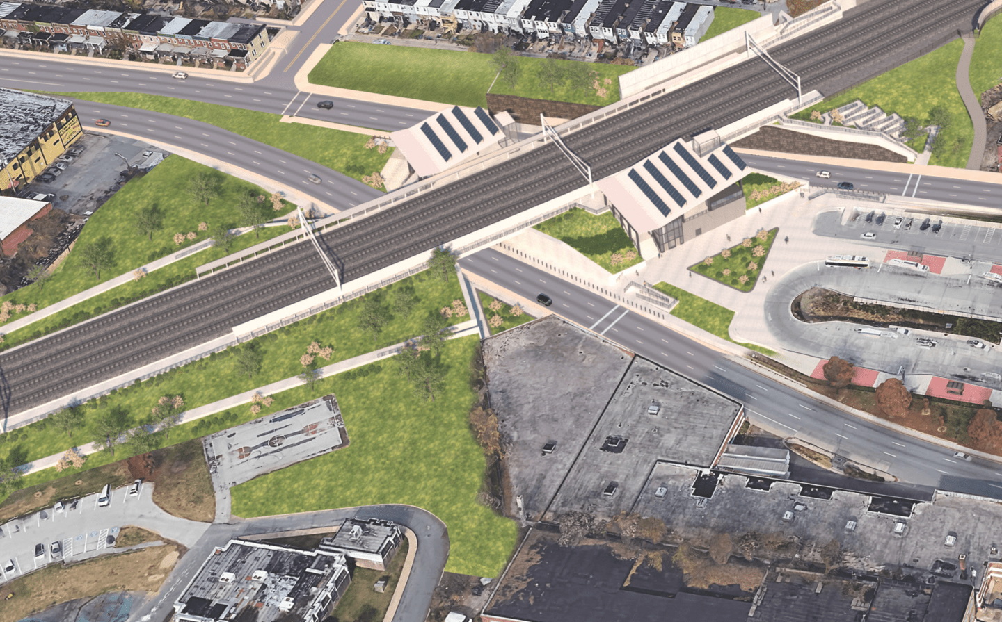 The Frederick Douglass tunnel is a $6bn project to replace the 150-year-old B&P tunnel, with the Southern Approach construction package (Package B) covering the new West Baltimore MARC station, the replacement of multiple bridges and the construction of the section of the tunnel from south of West Baltimore station to north of the new tunnel south portal.