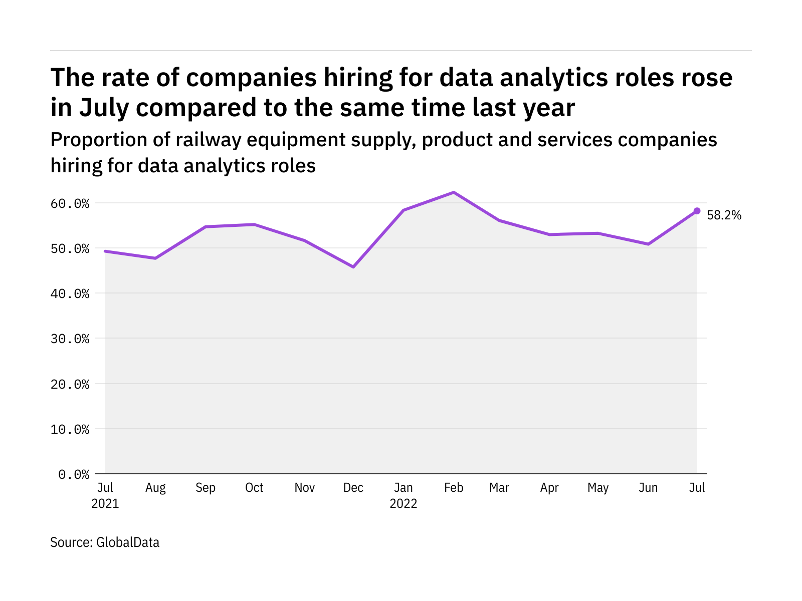 The proportion of railway equipment supply, product and services companies hiring for data analytics related positions rose in July 2022…