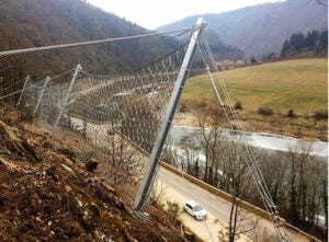 Traditional rockfall mitigation solutions using drapery meshes function by controlling the falling rocks behind a containment curtain of drapery mesh. Periodically, the collected rock debris is emptied under maintenance. However, in this instance there was insufficient space between the cutting and the railway to collect rock debris. Therefore, a much stiffer mesh system was required. The mesh needed not only high tensile strength, but most importantly stiffness, so it would exhibit minimal deflection under load.