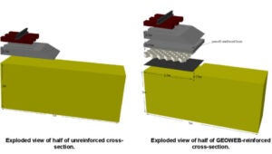 The benefits of GEOWEB confined ballast are substantiated through rigorous testing. Conventional ballast reinforcing materials, such as geogrids, Hot Mix Asphalt (HMA), do not have the strengthening attributes that GEOWEB geocells can provide, especially in soft subgrades.