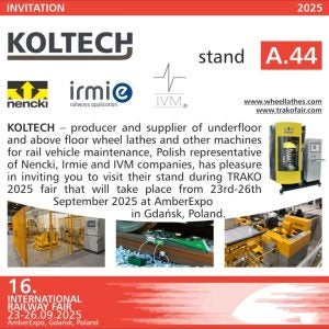 KOLTECH, a Polish producer and supplier of underfloor and above floor wheel lathes and other machines for rail vehicle maintenance, invites you to visit their stand during the INNOTRANS 2024 fair that will take place from 24-27 September 2024 at Messe Berlin, Messedamm 22 in Germany.