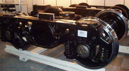 The dimensions effecting suspension performance are machined to close tolerances and the lower centre pivot is cast integral with the bolster, so no distortion occurs due to welding. The wheelset interlock device provides access to bearings at all times.