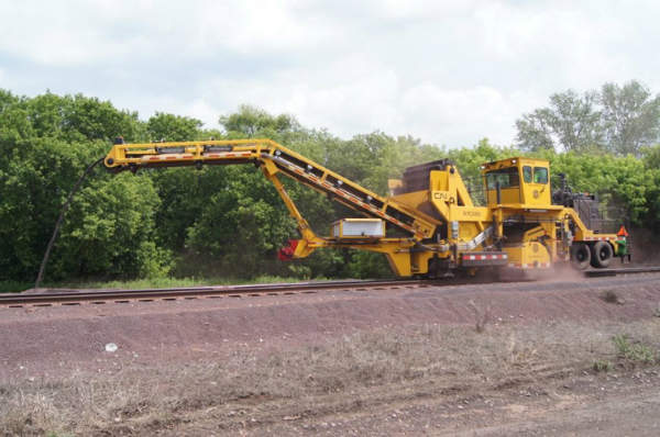 The KYC 550 Yard Cleaner clears track and shoulders as well as space between the track on multitrack lines.