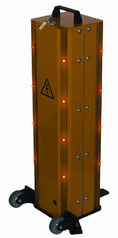 Warning light columns are used to provide a visual indication and demarcation of danger zones. Signaling is provided by flashing LED strings placed along the column’s four side corners. The mobile version with rollers is convenient and easy to position. Several light columns can easily be interconnected to form a master / slave system.