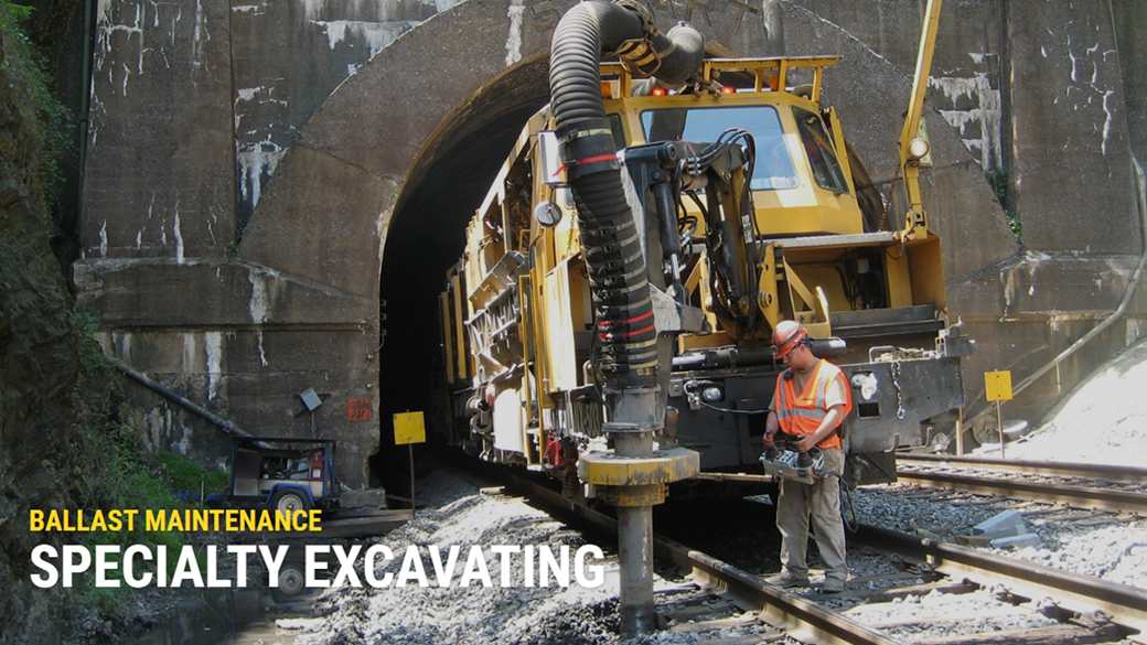 To complement rail maintenance, Loram delivers ballast maintenance and drainage‑focused services that help railroads preserve the structural foundation of the track system. Maintaining ballast performance and reliable drainage is critical to stabilizing the track structure, protecting subgrade integrity, and mitigating cascading infrastructure issues that can degrade safety and capacity. Loram provides corrective and proactive ballast and roadbed drainage maintenance intended to resolve common challenges that threaten track infrastructure, with offerings that include shoulder ballast cleaning, ditching, specialty excavating, track lifting, and undercutting. These services help railroads manage ballast fouling over time, restore drainage pathways, and sustain the load‑bearing support required to withstand vertical, lateral, and longitudinal forces.