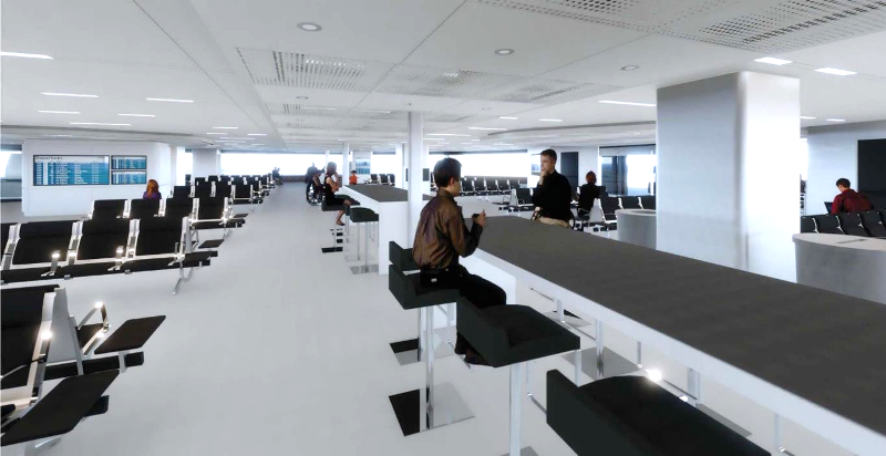 Amtrak and NJ TRANSIT will install new furniture and fixtures, including communal tables and seats equipped with electrical and USB outlets and LED lighting.