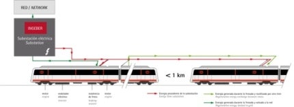 The system developed by INGETEAM to recover kinematic energy in railways, which solves existing energy braking recovery limitations, feeding back to the electricity grid the energy that would be burnt on the train’s resistance. The energy can also be used internally or stored.