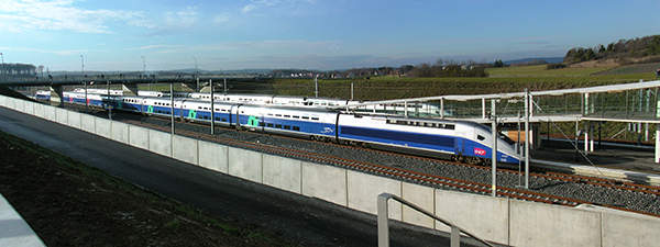 Euroduplex are suitable to operate on the French, German, Swiss and Luxembourg rail networks. The first set of trains was put into service in December 2011 when the French national railways SNCF inaugurated its Rhine-Rhone LGV high-speed rail line.