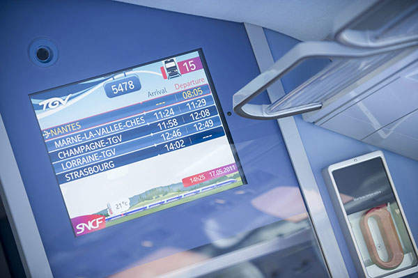 The Euroduplex train sets have facilities to display the car number, train number and destination externally, near the doors. Internal screens also display the information in various languages.