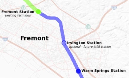 San Francisco Bay Area Rapid Transit (BART) system is being extended by 5.4 miles (8.69km) from the existing Fremont Station south to a new station called Warm Springs / South Fremont station in the Warm Springs District in Fremont, California, US.
