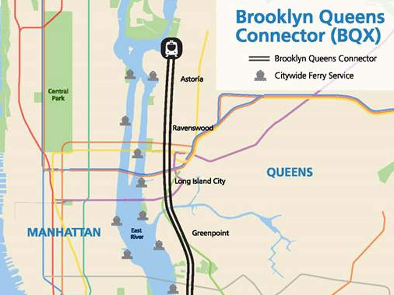 The Brooklyn-Queens Connector (BQX) is a proposed 26km-long light rail project between Sunset Park in Brooklyn and Astoria in Queens, New York, US. It is intended to provide quality transit-oriented service to under-served areas along the Brooklyn and Queens waterfronts.