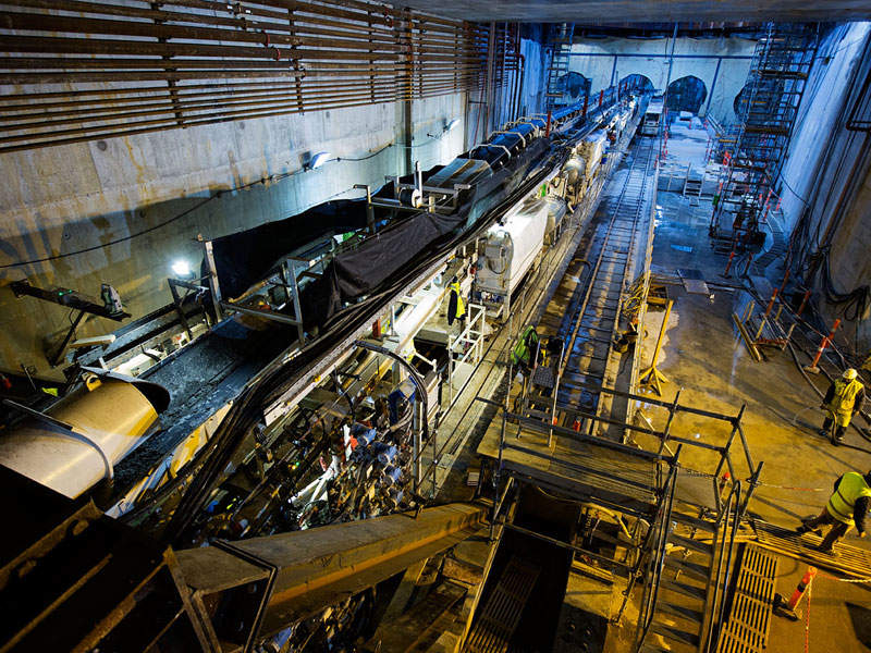 Tunnelling of the two 15.5km parallel tunnels started in 2013 and involved four tunnel boring machines, including Eva, Minerva, Nora, and Tria.