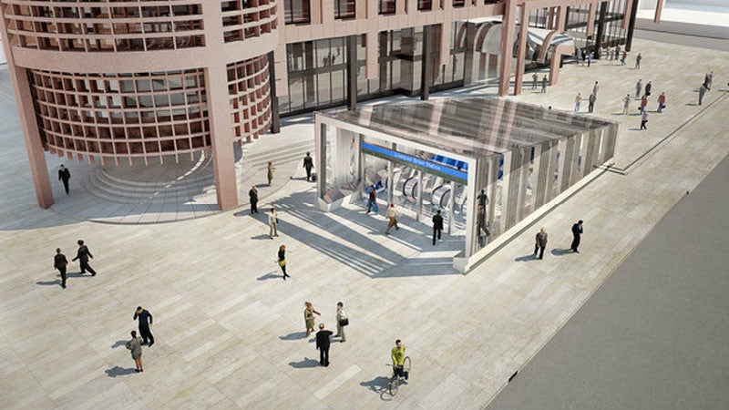 The eastern ticket hall entrance will link the Broadgate ticket hall to the existing London Underground hall, while the western ticket hall will be built at Moorgate underground station.