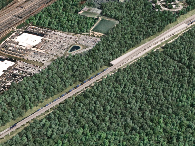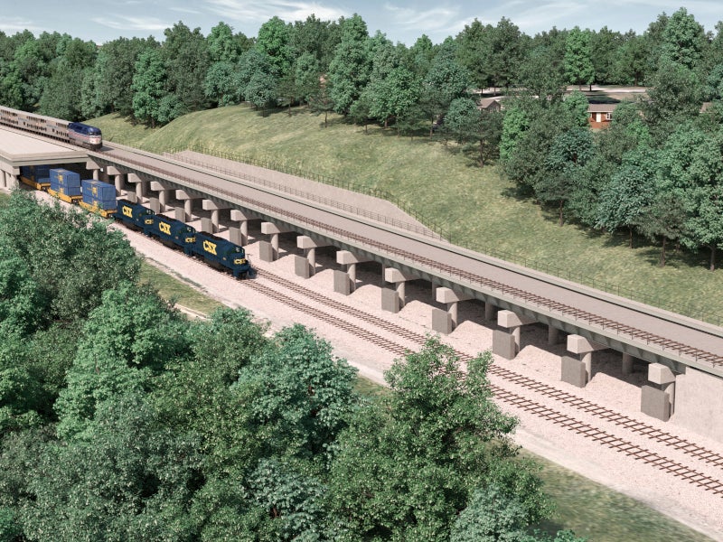 The Franconia-Springfield rail bridge will be an elevated bypass structure, spanning 1.4km with a maximum height of 11.16m (36.6ft). It will be the second such structure in the US.
