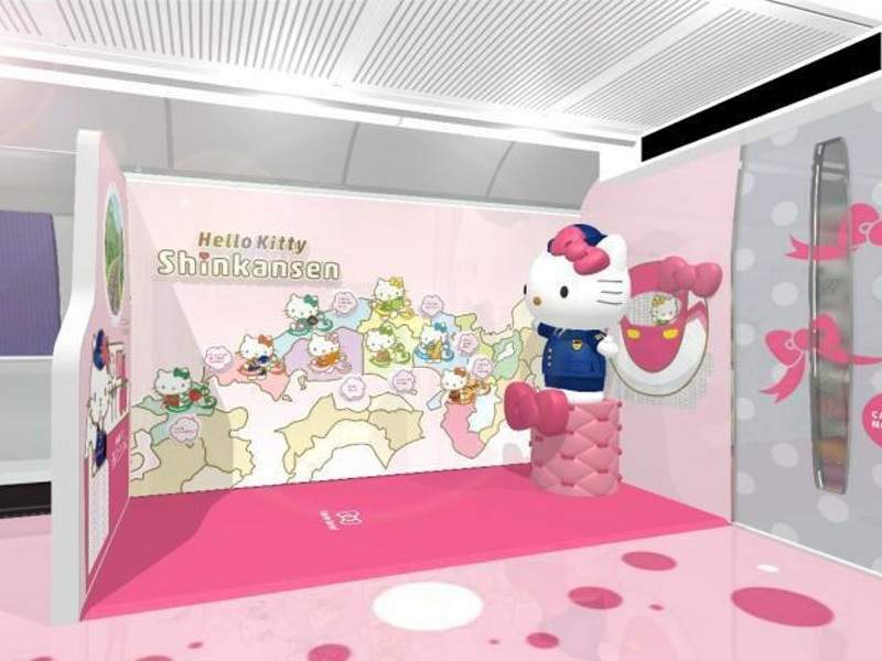 Two 500 Series Shinkansen trains were revamped and fitted with a Hello Kitty design throughout the carriages, as well as the exterior. The bullet trains entered service into June 2018.