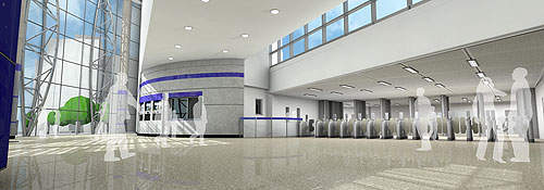 The new north station has a spacious and airy entrance. By August 2010, construction of the new north station concourse was completed to carry out shifting of the existing tracks from the western side of the bridge to the eastern side.