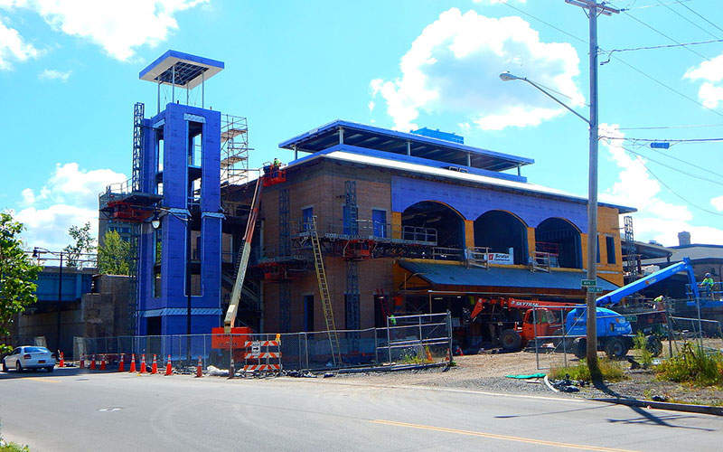 Being constructed on Whirlpool Street in Niagara Falls, New York, US, Niagara Falls International Railway Station and Transportation Center will serve as a new transportation hub and intercity rail between New York and Toronto, Canada.