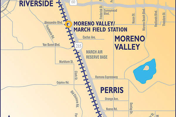 The Riverside Hunter Park station will feature 344 parking spaces, the March Field station will have 316, the Downtown Perris station will have 392, and the South Perris station will have 730 parking spaces.