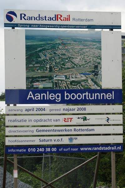 To connect the Metro with RandstadRail and thereby enable through working between the Erasmuslijn Slinge station and Den Haag Centraal, the twin-bore 2.4km (1.5 mile) Statenweg tunnel with one intermediate station, Blijdorp, is being built north from Rotterdam Centraal. It will connect with the present RandstadRail alignment.