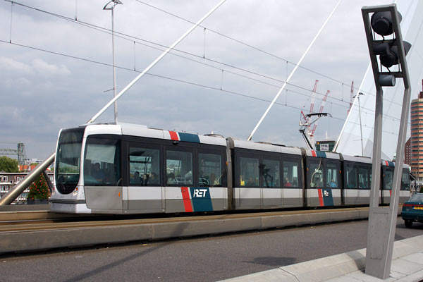 With phases of expansion and contraction, the Rotterdam electric tram network originating in the early 20th century was re-established for long-term development with a new cross-river link that had been abandoned with the opening of the Metro. With new sections and track improvements, the tramway combines street running with dedicated track, including the 808m Erasmusbrug Nieuwe Maas crossing opened in 1996.