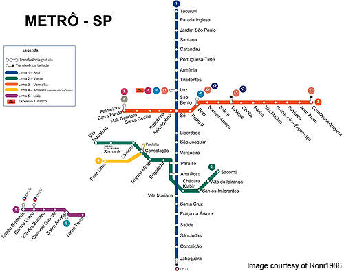 São Paulo has five metro lines – Line 1 (Blue), Line 2 (Green), Line 3 (Red), Line 4 (Yellow) and Line 5 (Lilac). The new monorail system will be an extension of the 14.7km-long metro line 2 currently operating between Vila Madalena and Vila Prudente with 14 underground stations.