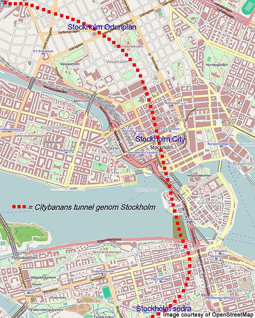 In an effort to ease the rail traffic congestion at Stockholm, a twin-track tunnel construction project called Stockholm City Line was proposed by the Swedish State Railway in 1988. The project was suspended at that time due to high cost.