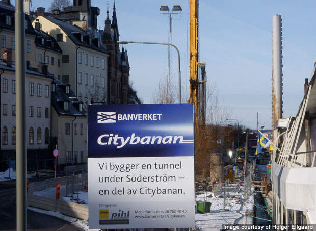 The STA began construction of the City Line with co-operation from the City of Stockholm, Stockholm County Council and Stockholm Public Transport. It will construct a new underground rail tunnel at a depth of 10m to 40m. About 1.5m m³ rock will be excavated to build the tunnel.