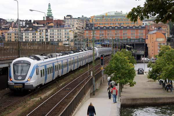 SL commuter trains like this X60 approaching Sodermalm island will be rerouted via Citybanan.