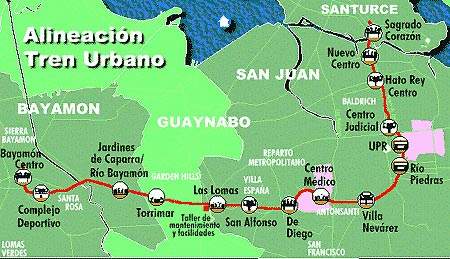 The initial phase of Tren Urbano will serve three central municipalities of the SJMA, Bayamóón, Guaynabo, and San Juan. In 1996 the scheme was projected to cost an estimated $1.25 billion, by 2002 the cost had risen to $2.036 billion.