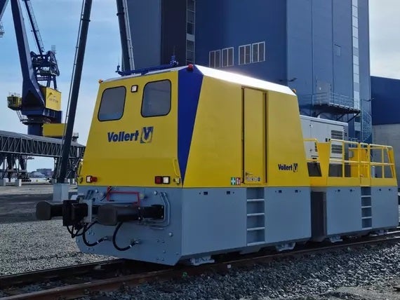 The radio controlled shunter is capable of using various European coupling systems to move goods at the Finnish port.